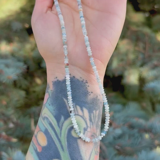 Soft, calming, and effortlessly wearable—this handcrafted amazonite necklace features delicately faceted beads that catch the light with a subtle shimmer. The natural blue-green tones of amazonite evoke ocean air and open skies, making this an easy everyday piece with a serene, grounding presence.