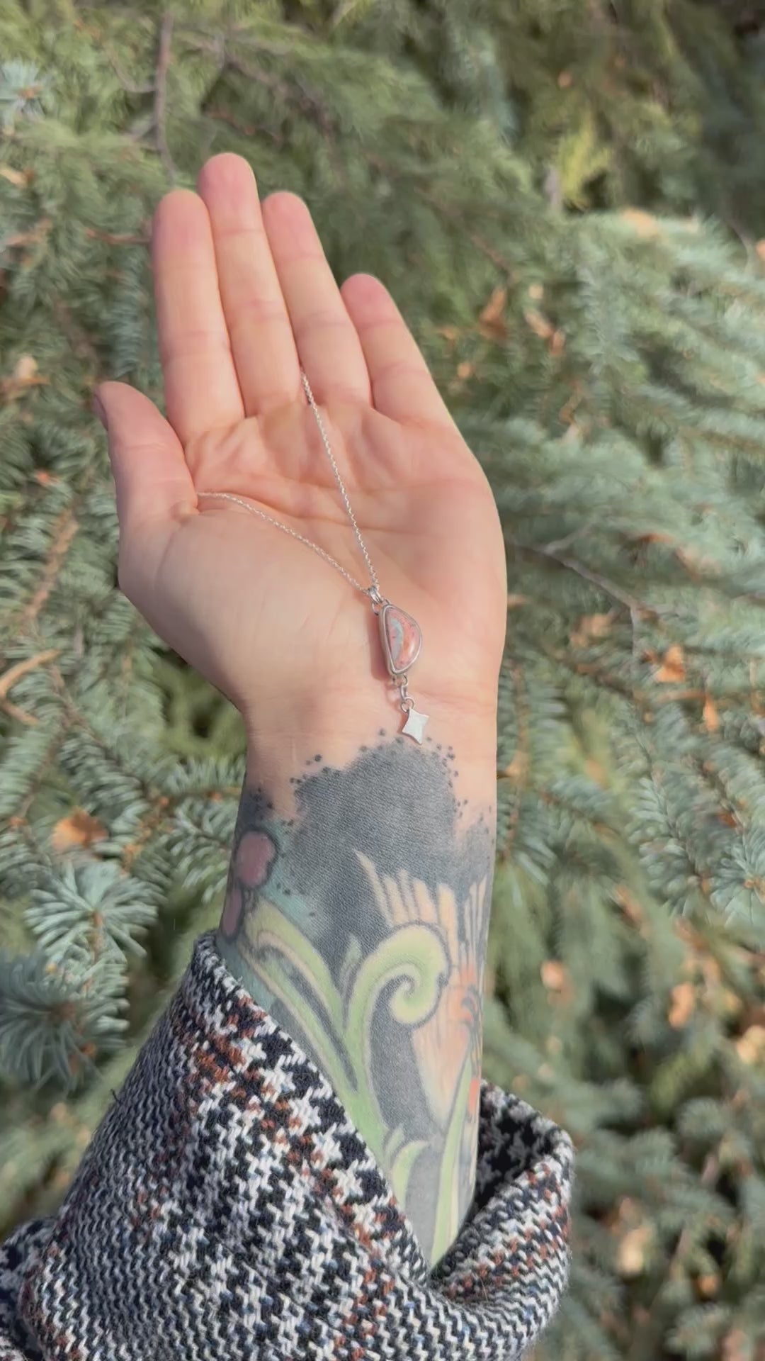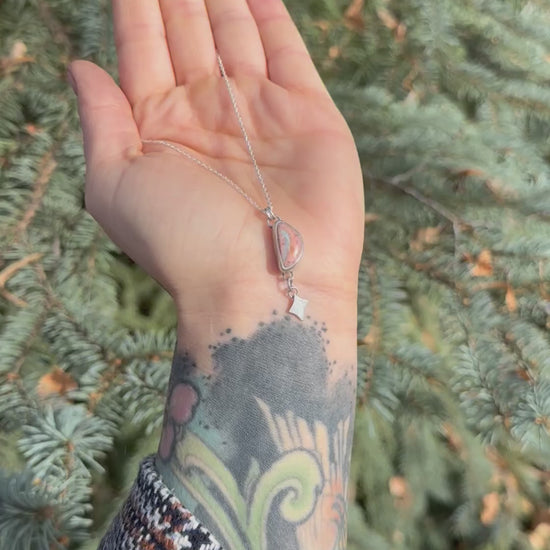 Soft desert tones meet celestial magic. This necklace features a natural fire opal with warm coral and a shimmery flash, wrapped in solid sterling silver and finished with a hand-cut star charm that adds just the right touch of movement and sparkle.