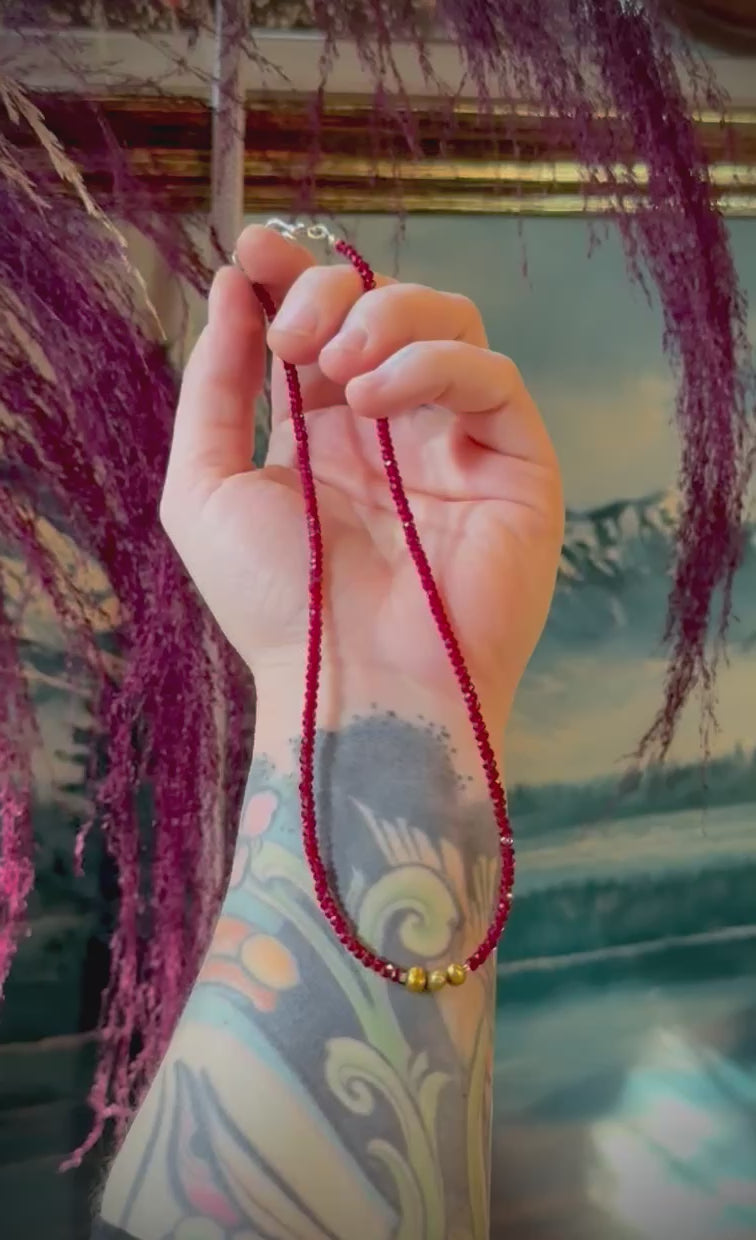 Faceted garnet beads + freshwater pearls + .925 sterling silver beads, clasp, & findings. Always handmade. Perfect for layering.