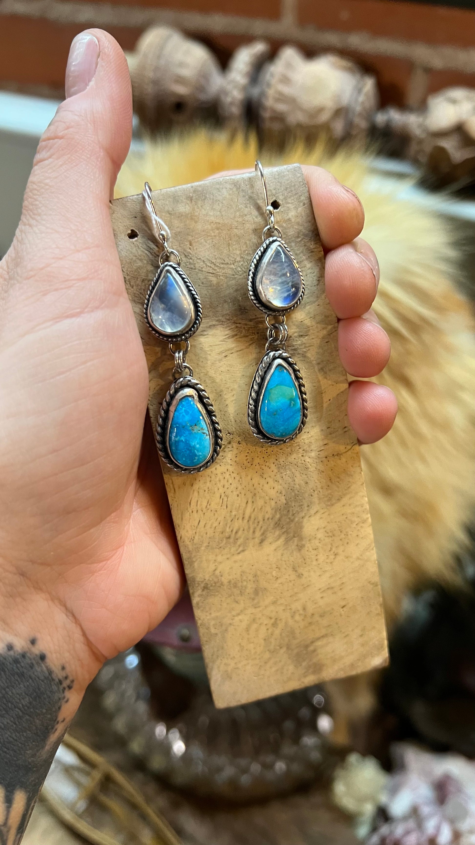 Rainbow Moonstone & Sonoran Mountain Turquoise Earrings