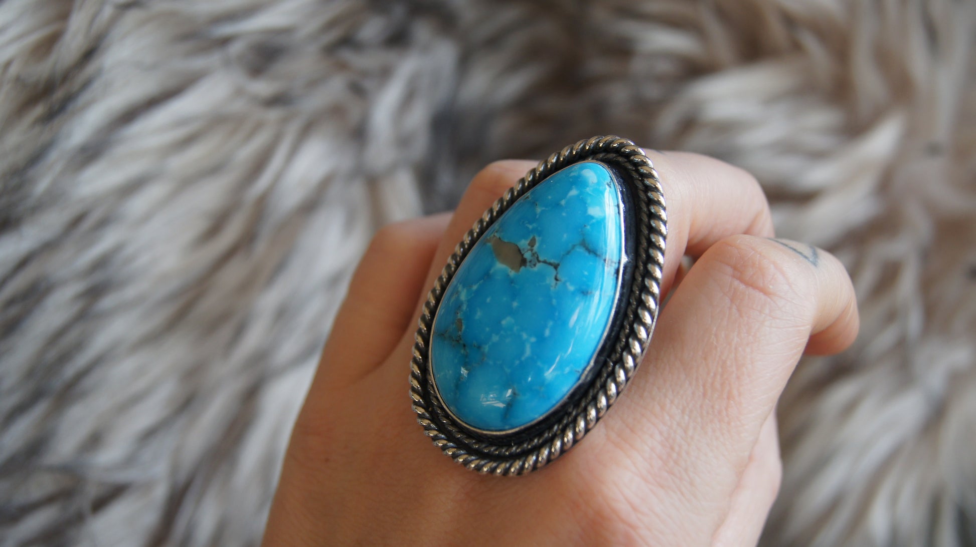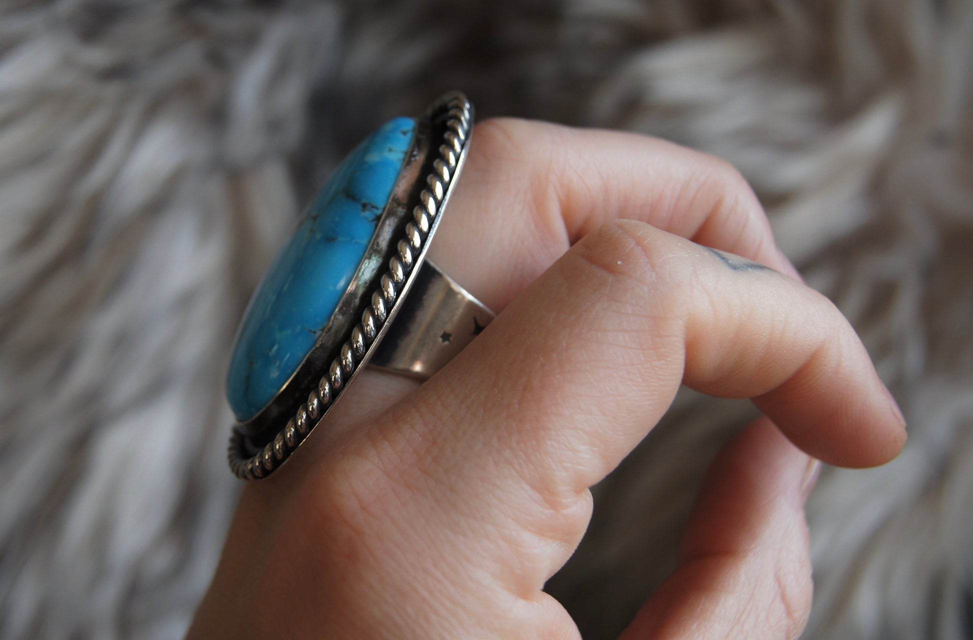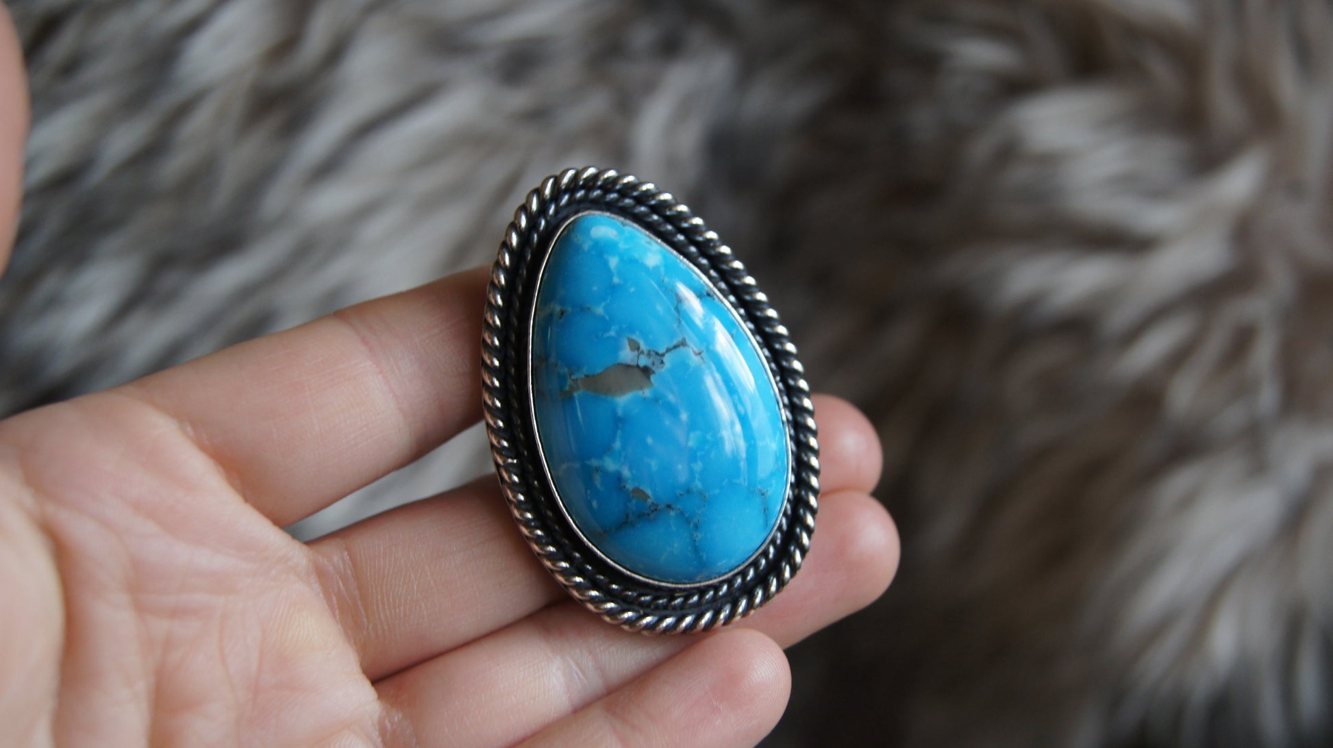 HUGE Turquoise Mountain (AZ mined) chunky statement ring. The most stunning shade of blue! A great piece for any turquoise enthusiast. US size 8.5.